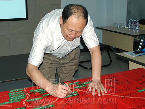賈恒昌副總裁在中國(guó)水泥萬(wàn)里行隊(duì)旗上簽字留念